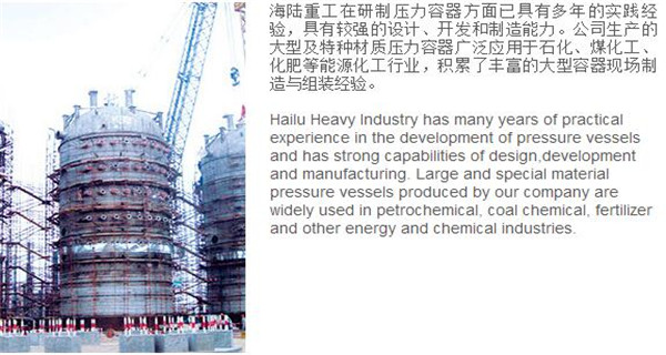 蘇州海陸重工股份有限公司位于江蘇省張家港市開發(fā)區(qū),是國(guó)內(nèi)一流的節(jié)能環(huán)保設(shè)備的專業(yè)設(shè)計(jì)制造企業(yè),目前并已初步形成鍋爐產(chǎn)品、大型壓力容器、核電設(shè)備、低溫產(chǎn)品、環(huán)保工程共同發(fā)展的業(yè)務(wù)格局。公司創(chuàng)建于1956年,注冊(cè)資本51640萬(wàn)元,占地面積近50萬(wàn)平米。公司下設(shè)八個(gè)控股子公司,一個(gè)余熱鍋爐研究所,在瑞士、北京、武漢、南京、上海、杭州、廣州等地設(shè)立分支機(jī)構(gòu),擁有雄厚的研發(fā)實(shí)力。公司秉承“科技領(lǐng)航、業(yè)界先鋒”的發(fā)展理念,注重研究廢熱、余熱利用和環(huán)境保護(hù)相結(jié)合的新技術(shù)研發(fā),自主設(shè)計(jì)能力居同行前列;公司承擔(dān)過(guò)國(guó)家863計(jì)劃,江蘇省科技成果轉(zhuǎn)化專項(xiàng)資金,榮獲國(guó)家科技進(jìn)步二等獎(jiǎng),產(chǎn)品擁有核心自主知識(shí)產(chǎn)權(quán)并取得專利50多項(xiàng);公司推行國(guó)際先進(jìn)的管理體系標(biāo)準(zhǔn)和認(rèn)證,擁有 A級(jí)鍋爐制造許可證,A1、A2、A3級(jí)壓力容器設(shè)計(jì)和制造許可證,取得了民用核承壓設(shè)備制造資格許可證、美國(guó)機(jī)械工程師學(xué)會(huì)(ASME)“S”、“U”鋼印,通過(guò)了ISO9001質(zhì)量體系認(rèn)證、健康體系認(rèn)證和14000環(huán)境體系認(rèn)證;公司設(shè)備先進(jìn),裝備精良,專業(yè)嚴(yán)謹(jǐn)?shù)闹圃炖砟畲蛟斐銎焚|(zhì)非凡、質(zhì)量一流的“海陸”品牌聲譽(yù)。